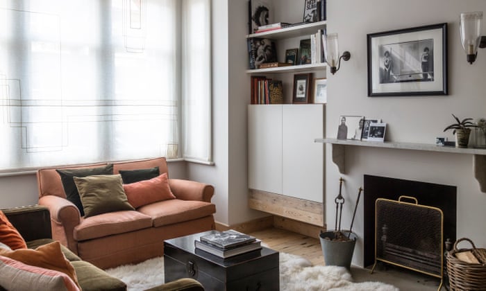 Living new broom: The sheepskin rug was an eBay find, and the sofas are heirlooms that have been reupholstered. Photograph: Ben Anders for the Observer
